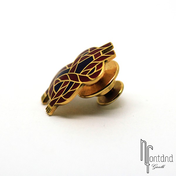 Elegante spillino a forma di "Stemma dell'aviazione" di Giovepluvio, smaltato a fuoco.