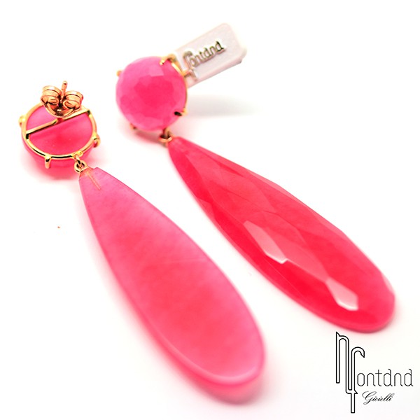 Orecchini Maria Claudia in oro rosa 9 kt, giada acquamarina e prasiolite