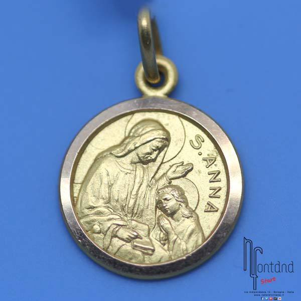 CIONDOLO MEDAGLIA RELIGIOSA IN ORO GIALLO CON RAPPRESENTAZIONE DELLA MADONNA E SANT'ANNA