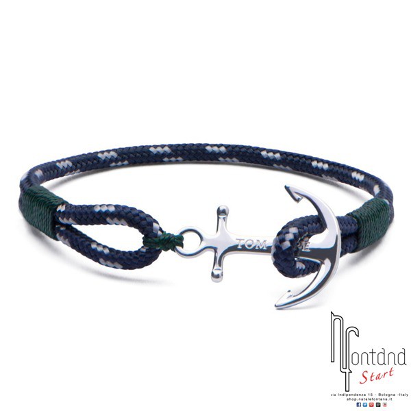 TOM HOPE BRACCIALE "SOUTHERN GREEN" - ANCORA SILVER, CORDINO UN GIRO, RIFINITURE IN COTONE VERDE SCURO